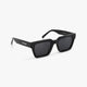 Zwart montuur met blauwe glazen en zilver kleur branding op de zijkant, zonnebril van Croyez.
