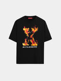 Xplct flame t-shirt is oversized en grote branding op de voorkant met vlammen print. Artikel valt groter.